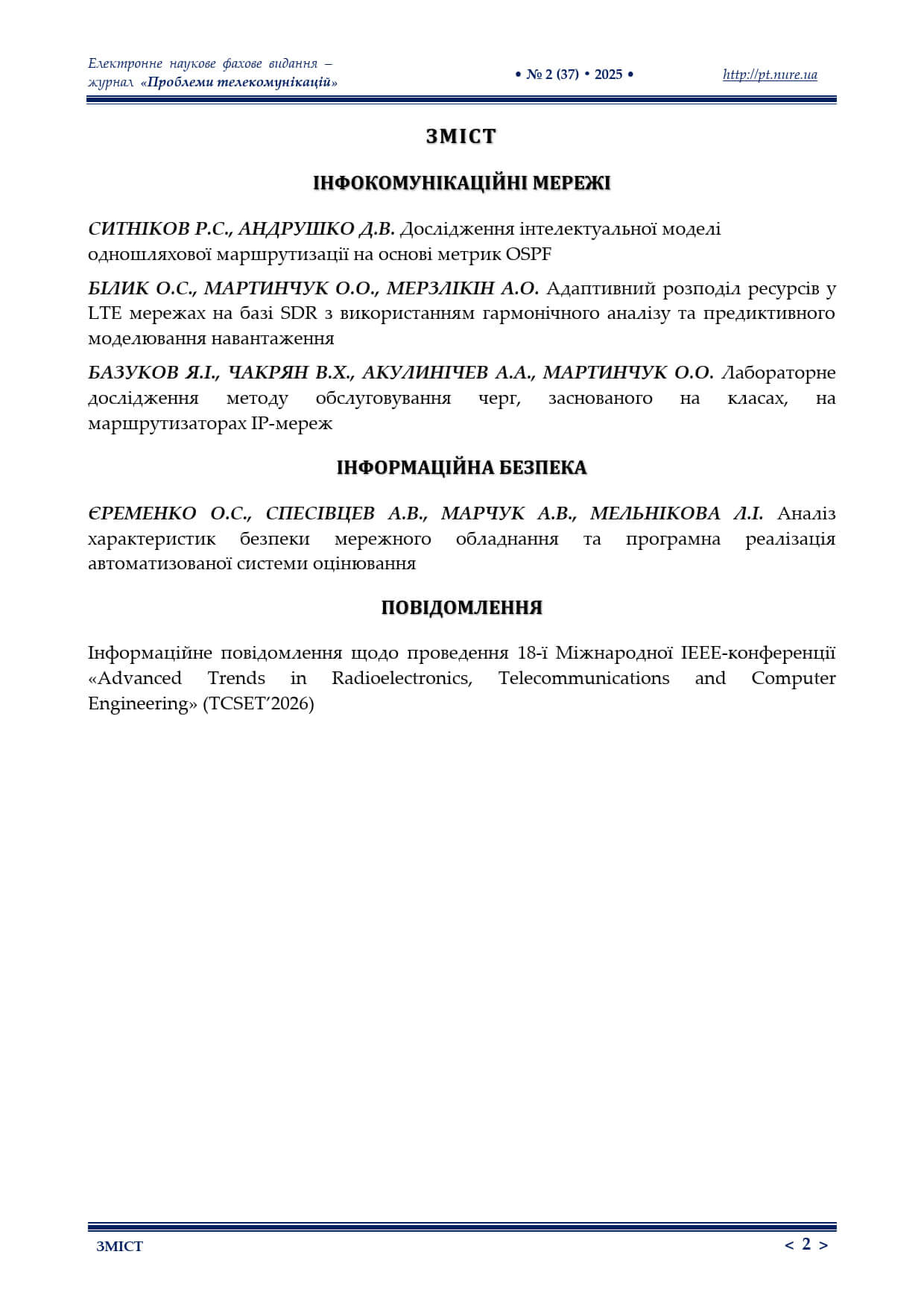 Інформаційне повідомлення щодо проведення 18-ї Міжнародної ІЕЕЕ-конференції «Advanced Trends in Radioelectronics, Telecommunications and Computer Engineering» (TCSET’2026)